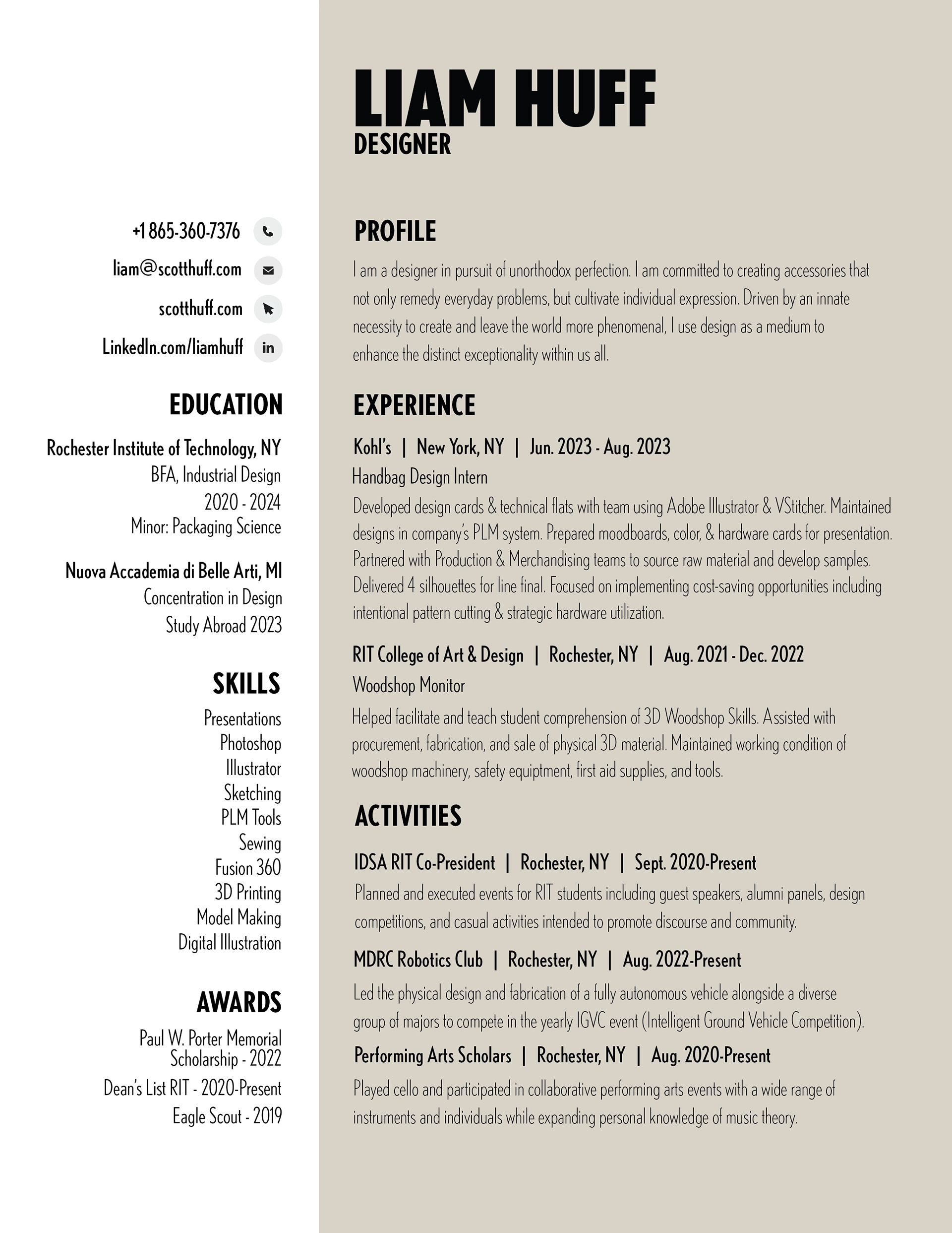 I AM A DESIGNER IN PURSUIT OF UNORTHODOX PERFECTION. I AM COMMITTED TO CREATING ACCESSORIESÂ THAT NOT ONLY REMEDY EVERYDAY PROBLEMS, BUT CULTIVATE INDIVIDUAL EXPRESSION. DRIVEN BY AN INNATE NECESSITY TO CREATE AND LEAVE THE WORLD MORE PHENOMENAL, I USE DESIGN AS A MEDIUM TO ENHANCE THE DISTINCT EXCEPTIONALITY WITHIN US ALL