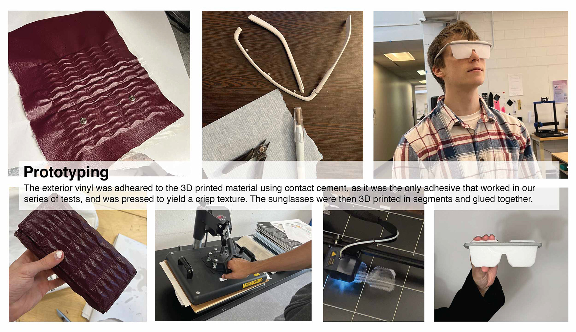 Semy Kong models the physical prototypes of the Kartell Wallet and Sunglasses. Vinyl, Satin, & 3D Printed PLA were used to construct the wallet, and 3D printed PLA & PETG were used to construct the glasses.